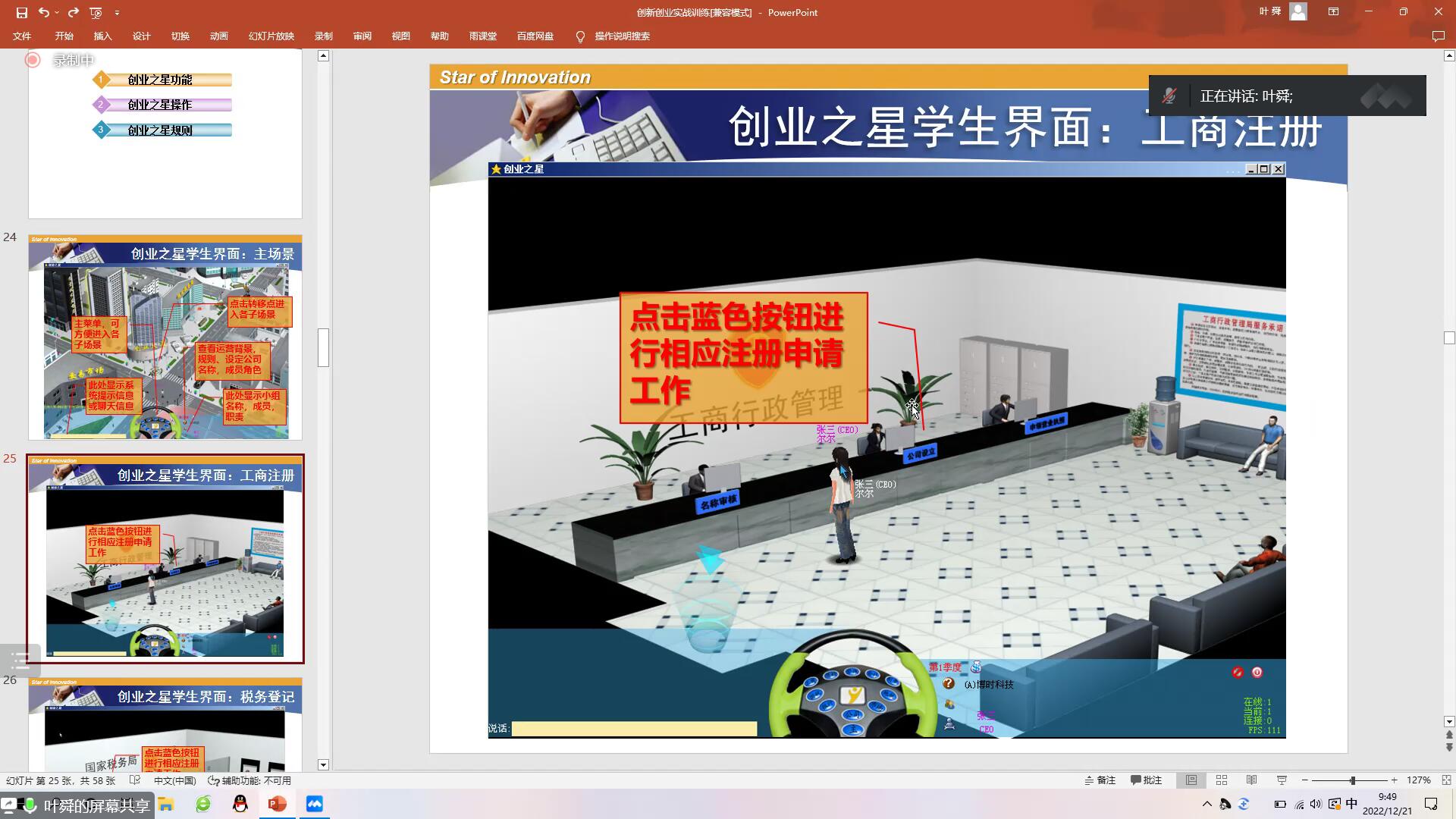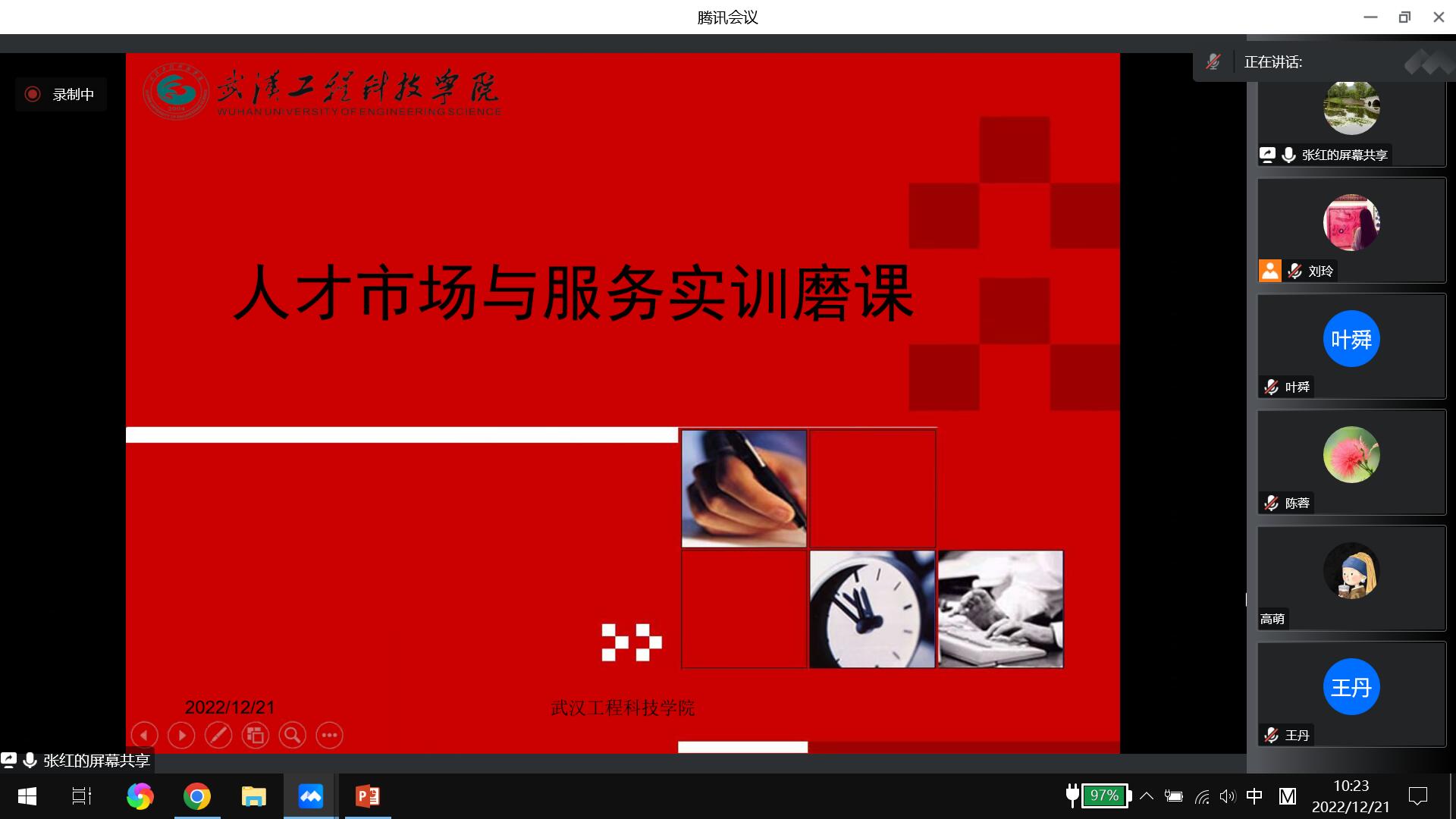 2022年12月21日上午9:30,经济管理学院工商管理系在腾讯会议平台进行了实践教学技能演练活动,工商管理系全体教师参加了此次线上交流活动。此次磨课主要针对2022-2023-2学期教师所授的实训课程,为保证评估活动的顺利进行,工商系全体教师以饱满的热情、充足的准备迎接此次磨课活动。