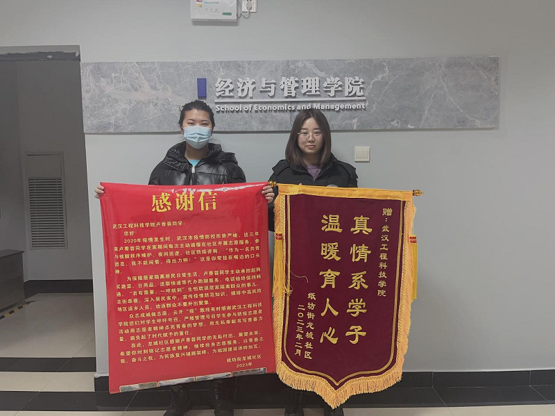 2023年2月28日,武汉工程科技学院经济与管理学院收到了一份特别的礼物。武汉市江夏区纸坊街龙城社区的领导带着“真情系学子,温暖育人心”的锦旗和感谢信来到这里,为学院送上诚挚的谢意,经管学院党总支书记王启帆代表学院接受社区锦旗并对社区表示感谢。