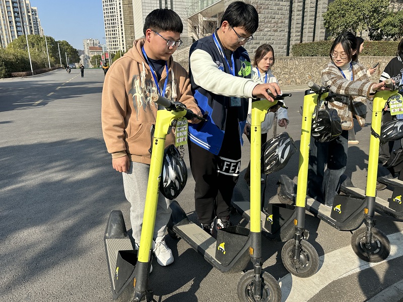 启动仪式后,经管师生党员分组进行学雷锋活动月第一次活动—“规范校园滑板停车,共建美好生活社区”。