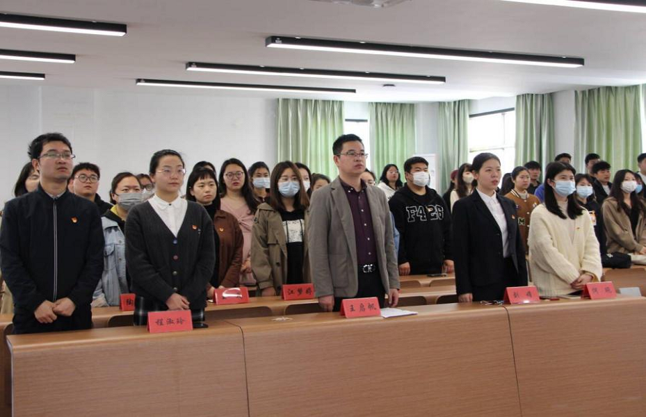 大会第一项,介绍到场的领导和老师,参加本次仪式的有经济与管理学院党总支书记王启帆,团总支书记刘娟,学生第一党支部书记何琬、组织委员王彧,学生第二党支部书记陶歆雅、组织委员江梦婷,学生第三党支部书记程淑玲、组织委员王露,班级辅导员及各支部党员们。