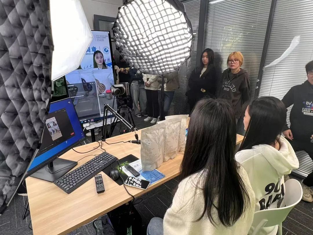教研室老师们和直播基地老师们为同学们详细讲解电商直播相关事项,讲解后引导学生进行实操。