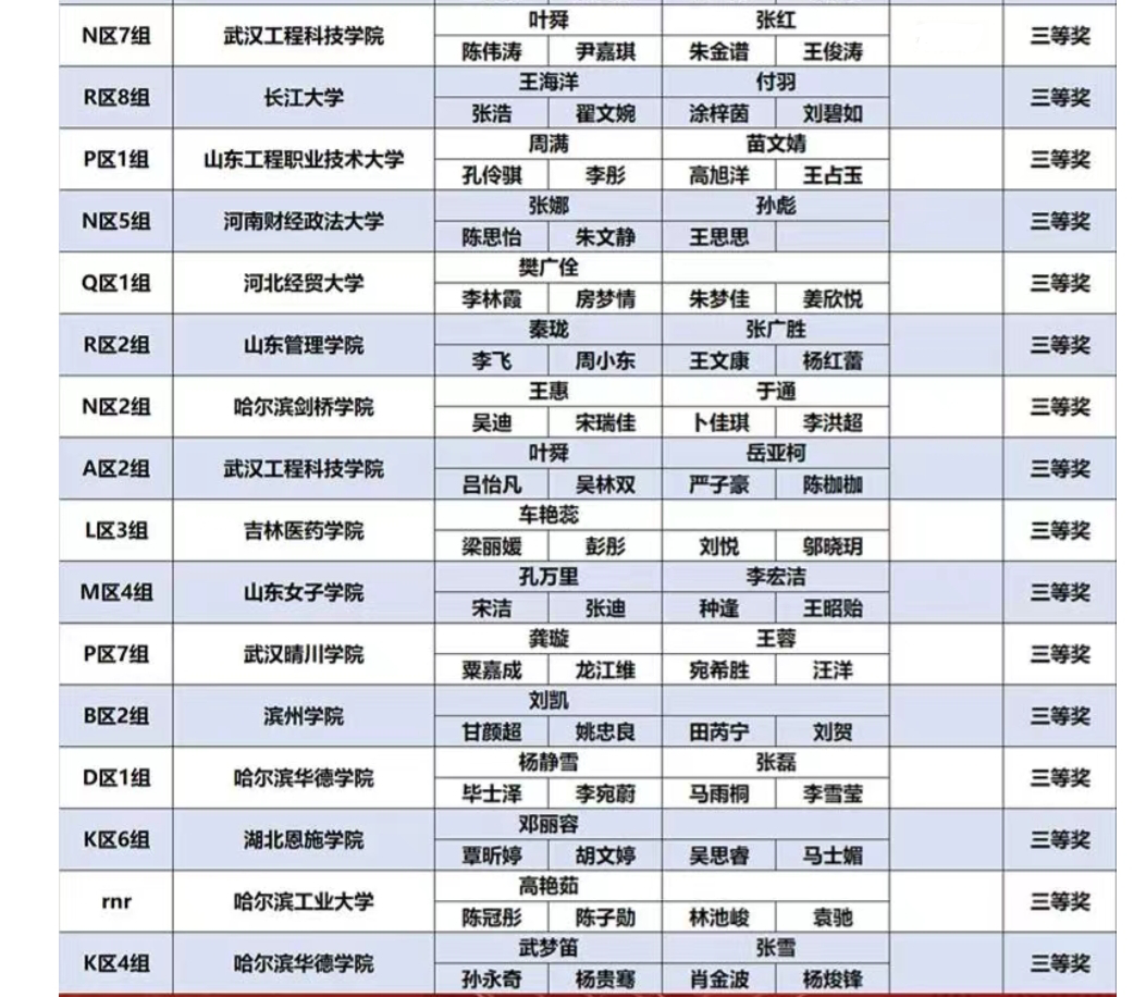 金融学专业陈伟涛、朱金谱、尹嘉琪、王俊涛,工商管理专业学生吕怡凡、严子豪、吴林双、陈珈珈和孙婷婷、孙希文、李静、高晓燕三支团队共计12位选手在智慧商务分析决策赛道获得了三等奖的好成绩。