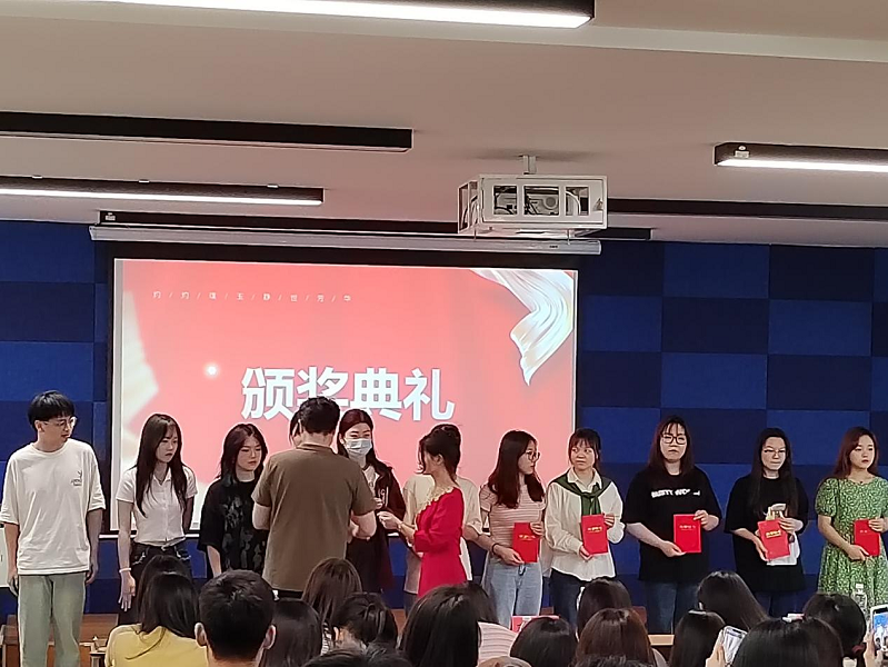 大会第二项,主持人公布了优秀志愿者的获奖名单,许慧杰老师宣读2022年至2023年第一学期优秀志愿者表彰决定,毛洪涛副院长为志愿服务标兵及抗疫先锋志愿者获奖同学进行颁奖,王露老师为年度优秀志愿者获奖同学进行颁奖。