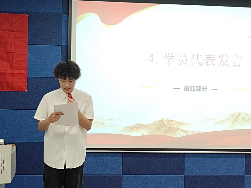 大会第四项,由学员代表熊汉上台发言,他表示中国共产党是工人阶级的先锋队,也是中华人民和中华民族的先锋队,是中国特色社会主义的领导核心。如今参加党校学习,学员们更应严于律己,以入党积极分子的身份来严格要求自己,端正自身学习态度,提高自身思想觉悟,不断提升自身素质,积极树立党校学员的良好形象。