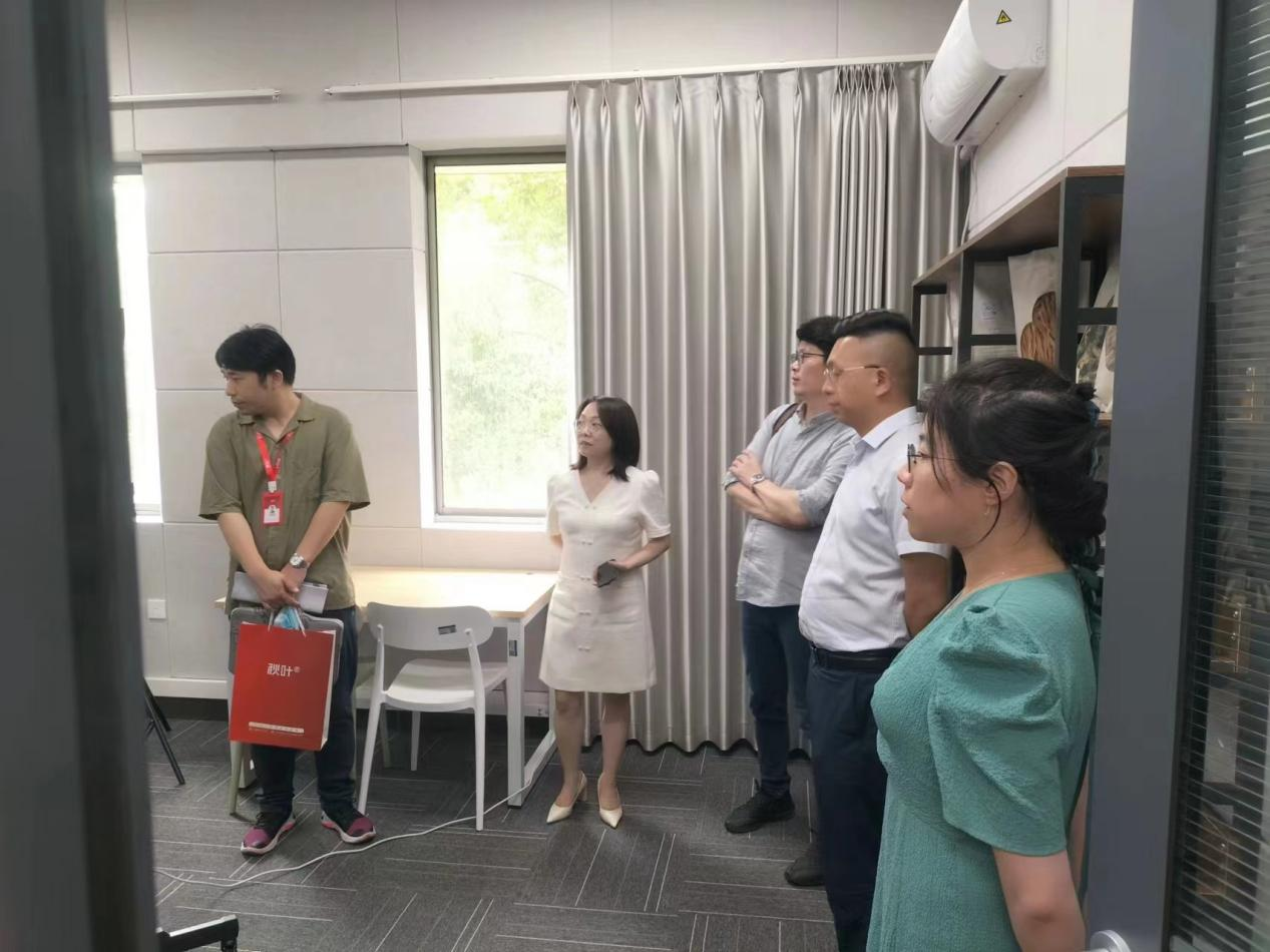 随后,毛洪涛副院长带领参观了学院直播实训教研中心,该实训教研中心硬件设施齐备、环境优美,而且通过跨专业培养,已经孕育了20个校直播电商团队,约100多名学生组队参与,给学生提供了实战机会,受到了学生和企业的高度认可。