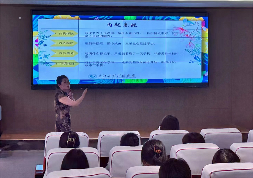 刘洁主任以“内耗”为中心,围绕着“精神内耗、内耗表现、内耗成因、拒绝内耗”四个方面进行重点阐述。期间,刘洁主任结合自身多年工作经验与实际案例,为寝室长们重点强调了要悦纳自己,拒绝拖延,积极面对未来,释放青春的生活态度,在互动环节中,通过游戏帮助寝室长建立自信并向同学们提出建议要从拒绝内耗做起,为大学的寝室生活营造轻松、愉悦、积极的生活氛围与态度。最后希望同学们能够通过种种内耗表现来排查重点人群、识别室友心理危机征兆、有效开展危机干预工作。