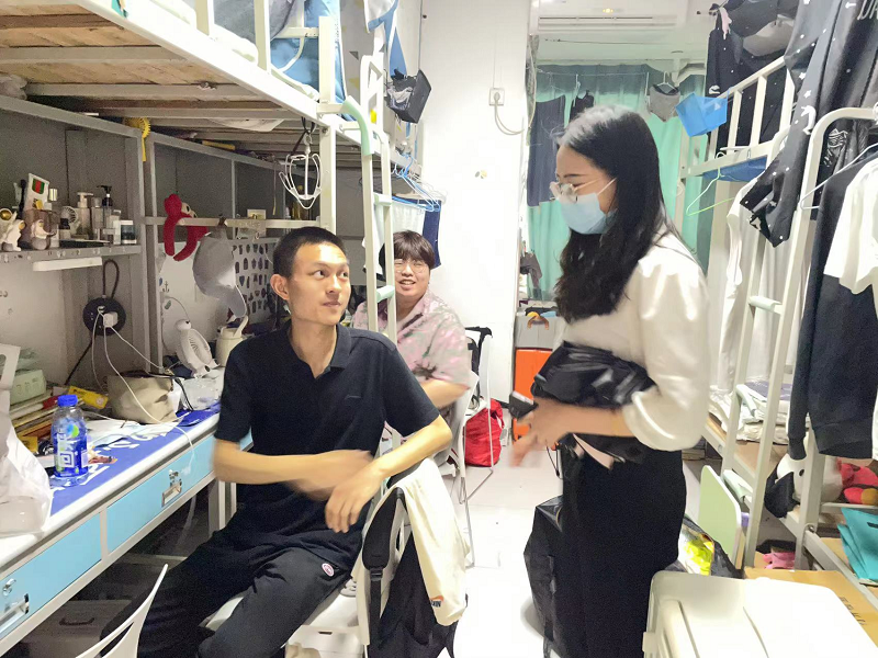本网讯(通讯员:陶歆雅)6月16日晚,经济与管理学院在党总支书记王启帆的组织下,团总支书记刘娟带领我院毕业班辅导员对2023届毕业生开展了离校前最后一次暖心查寝活动。