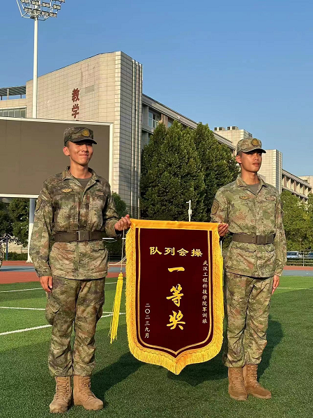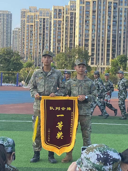 本网讯(通讯员:陶歆雅 周虞)2023年9月17日,武汉工程科技学院2023级新生军训会操考核大会在学院田径场举行,活动圆满完成。经济与管理学院所属四营和八营在考核中表现突出,荣获一等奖。
