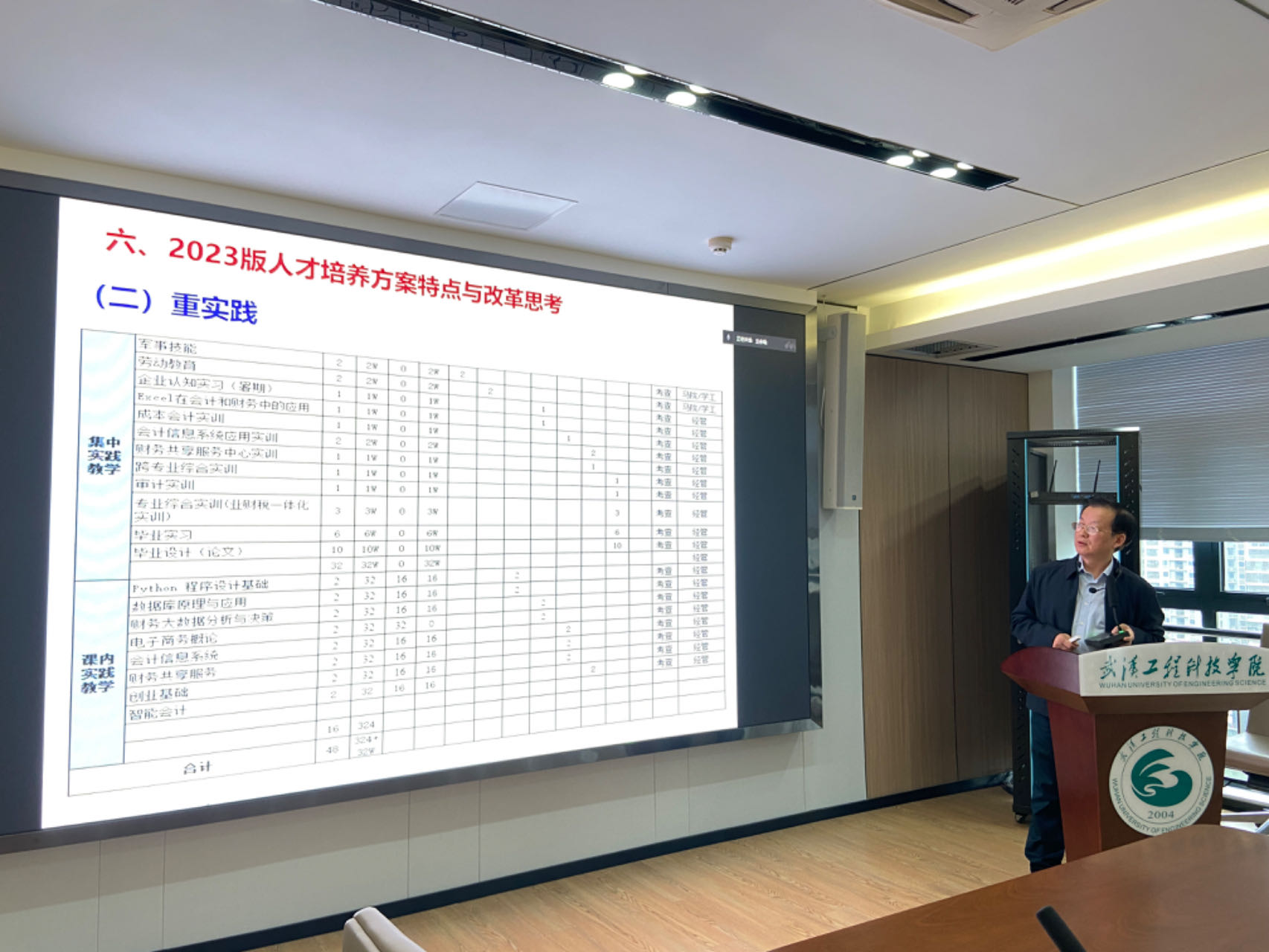 会计学专业负责人欧阳歆和财务管理专业负责人李菲依次汇报了本专业的人才培养方案,介绍了人培方案的制定思路、培养目标以及课程设置等内容。
