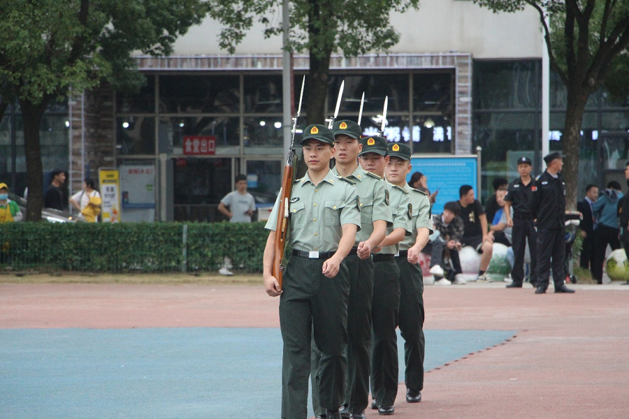 大会第七项,分列式方阵表演在《阅兵进行曲》中进行,各方队雄赳赳气昂昂依次从主席台走过。经济与管理学院新生组成的队伍打着头阵,他们队列表演整齐划一,动作刚健有力,展示了我校新生良好的形象和精神风貌,精彩的表演赢得在场领导和师生的阵阵掌声。
