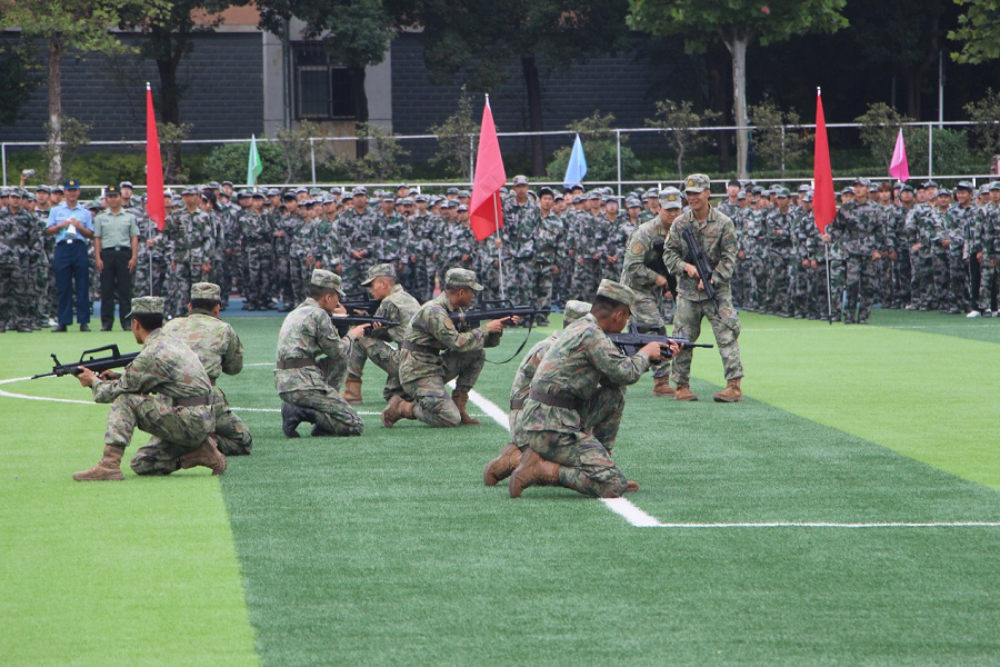 大会第三项,教官实战演练,默契的配合,行如流水的动作,最终完美的救出人质。每一个姿势都体现了军人的魄力意志。他们的演出让新生感到震撼,在今后的生活中,他们会不断加强自身的学习和锻炼,提高自身的业务素质和综合能力水平,为保卫祖国的安全和繁荣做出更大的贡献。