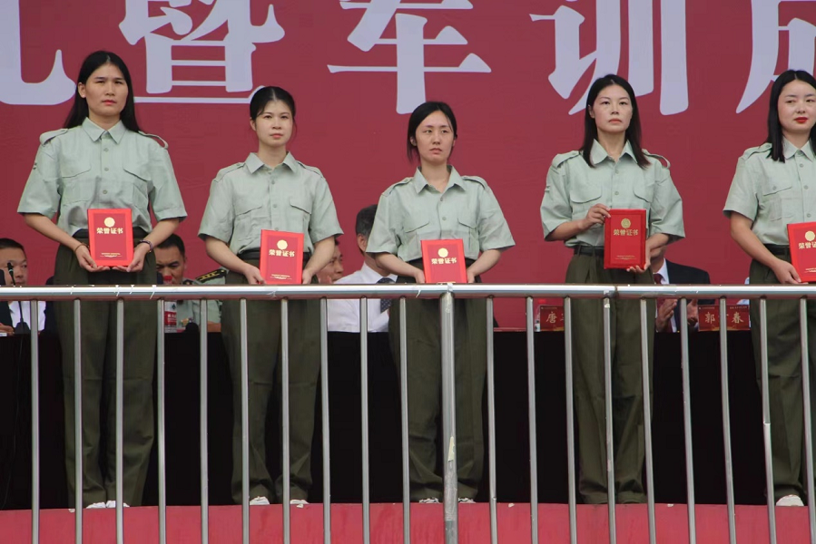 汇报表演结束后,主持人宣读了军训优秀学员、优秀带班学长和优秀辅导员,学校领导为他们颁发了证书。经济与管理学院获奖人员有: 优秀军训学员男生组:34连杨天乐、35连袁兵、36连杨烁、37连吴嘉宇,女生组:七组朱晨娜、六组方茜、五组时佩雯、三组卢梦雪、二组刘鑫怡、一组高文诺,优秀学长:党晓龙、刘华力、袁聪,优秀辅导员:何琬老师、许慧杰老师。希望受表彰的同学再接再厉,其他同学要以获奖同学为榜样,将军训的成果转化为学习生活的不竭动力。继续严格要求自己。