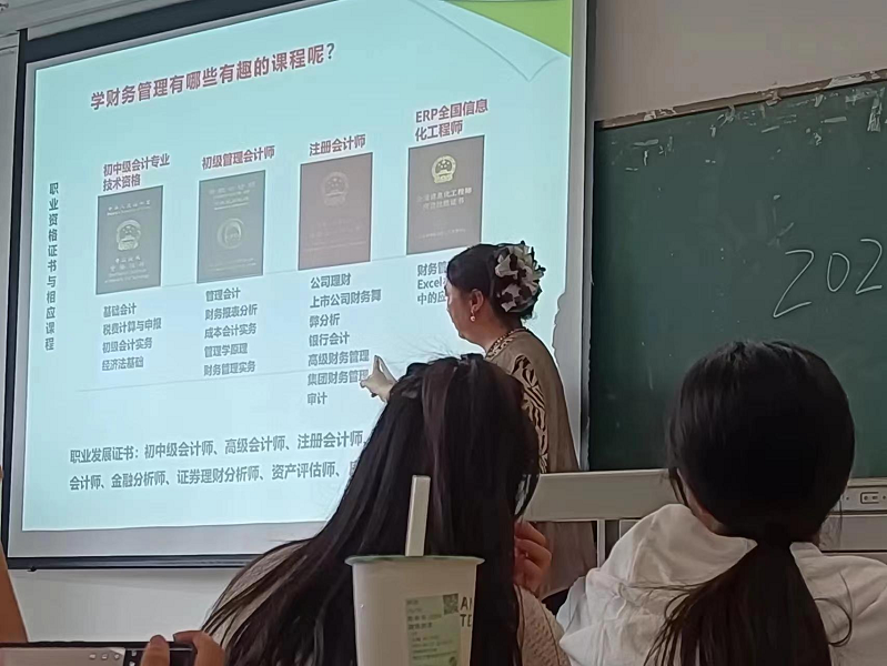大数据与会计专业的李艳老师主要从专业定位、专业介绍和职业生涯规划这三个方面入手,全面系统地介绍了会计学院的师资力量和未来人才培养计划,让新生对自己大学生活有了一个更加具体的轮廓。经过本次专业介绍会,使2023级大数据与会计专业的新生们对其专业有了初步了解,也让同学们对自己的职业发展方向有了更清晰的定位。