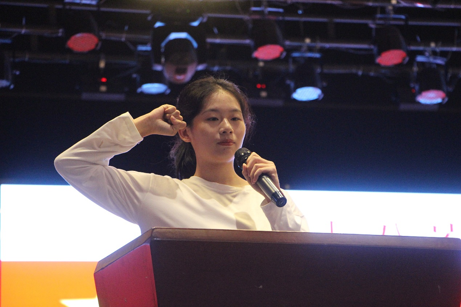 精彩的宣讲结束后,刘娟老师上台带领大家一睹经管优秀学子的风采,也从中引导大家在大学实现转变,学会成长,鼓励大家在大学这所加油站里为自己灌注满满的力量,找准定位,脚踏实地,最终驶入成功的快车道。随后,刘娟老师带领全体新生进行了成人礼宣誓,此刻,无论年龄大小,大家都已然成为大人,要学会对自己的人生负责。
