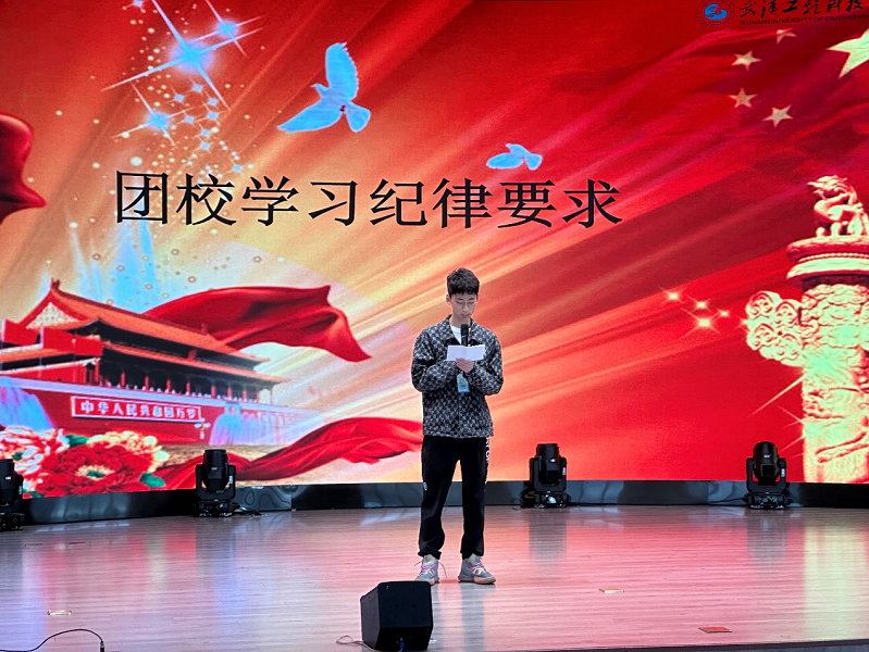 活动第二项,经济与管理学院团总支组织部艾泽安向同学们介绍团校学习的纪律要求。要求参加培训的学员不迟到,不早退、在授课期间必须佩戴团徽、衣着得体、严禁喧哗、睡觉、换座位、玩手机等。