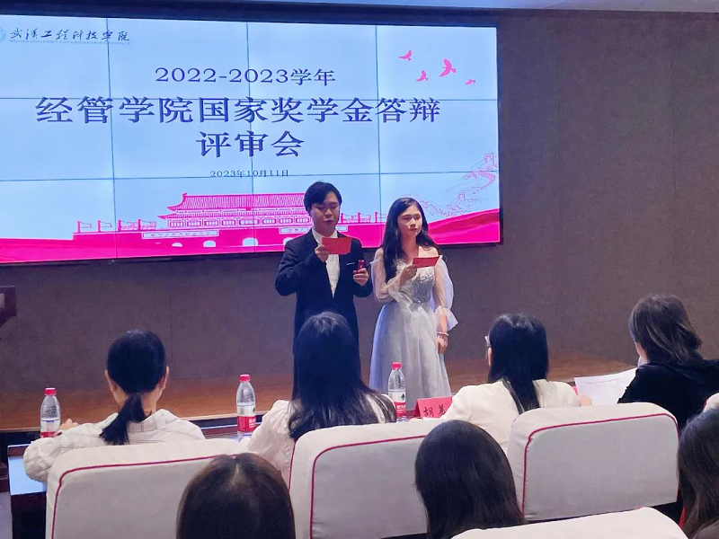本网讯(通讯员:陶歆雅 彭心可 王子怡 张瑞)为全面规范国奖的审评工作,充分发挥国奖的引领作用,展现经管学子的标杆作用,激发新一届经管学子不断上进的愿望和信心,武汉工程科技学院经济与管理学院于2023年10月11日14时30分在一教115教室举行了2023年国家奖学金评审答辩会。出席此次国家奖学金答辩会的评委团有:经济与管理学院党总支书记胡美玲老师,团总支书记兼学工科科长刘娟老师以及各位辅导员们。