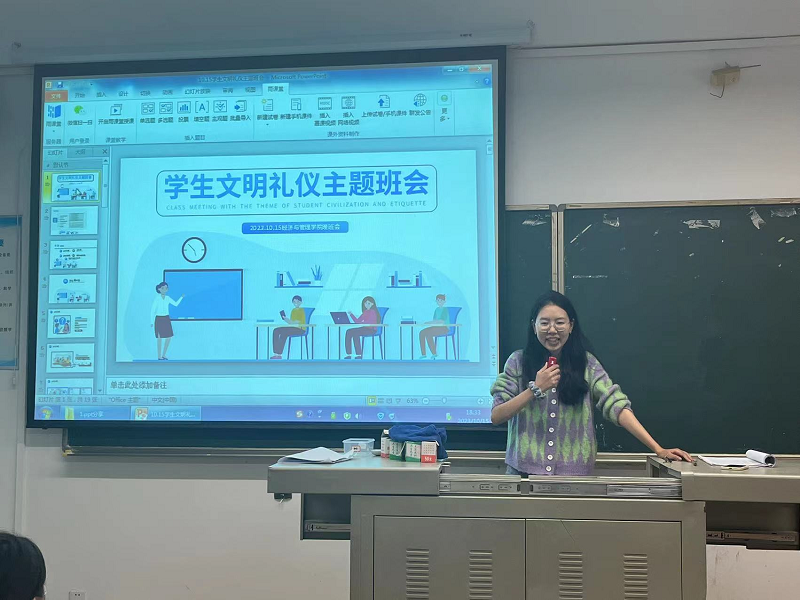 为了进一步加强对大学生的文明礼仪教育,加强校园精神文明建设,提高学生文明素质和文明礼仪水平,塑造学生良好精神面貌,引导学生养成文明、得体的习惯,各年级辅导员从什么是文明礼仪、文明礼仪的意义、校园不文明行为和校园文明行为规范四个方面展开,用生动的视频和现实案例给同学们做现场教学,强调课堂文明、宿舍文明、食堂文明和举止文明的规范。