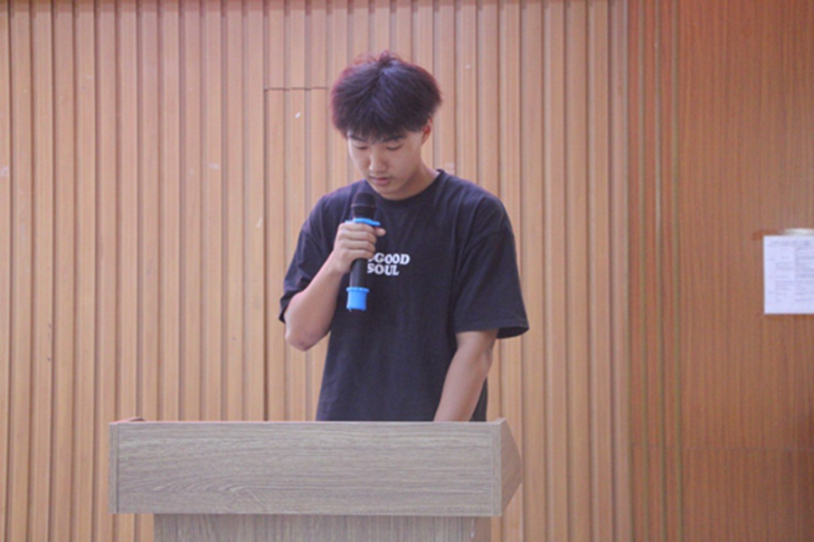 大会第三项,运动员代表王哲天发言:“在运动场上,我们将展现出我们的团队的精神、毅力和拼搏精神。运动会不仅仅是比赛,更是友情的淬炼。公平竞争是运动会的核心价值之一,因为同伴也在为胜利而努力。”