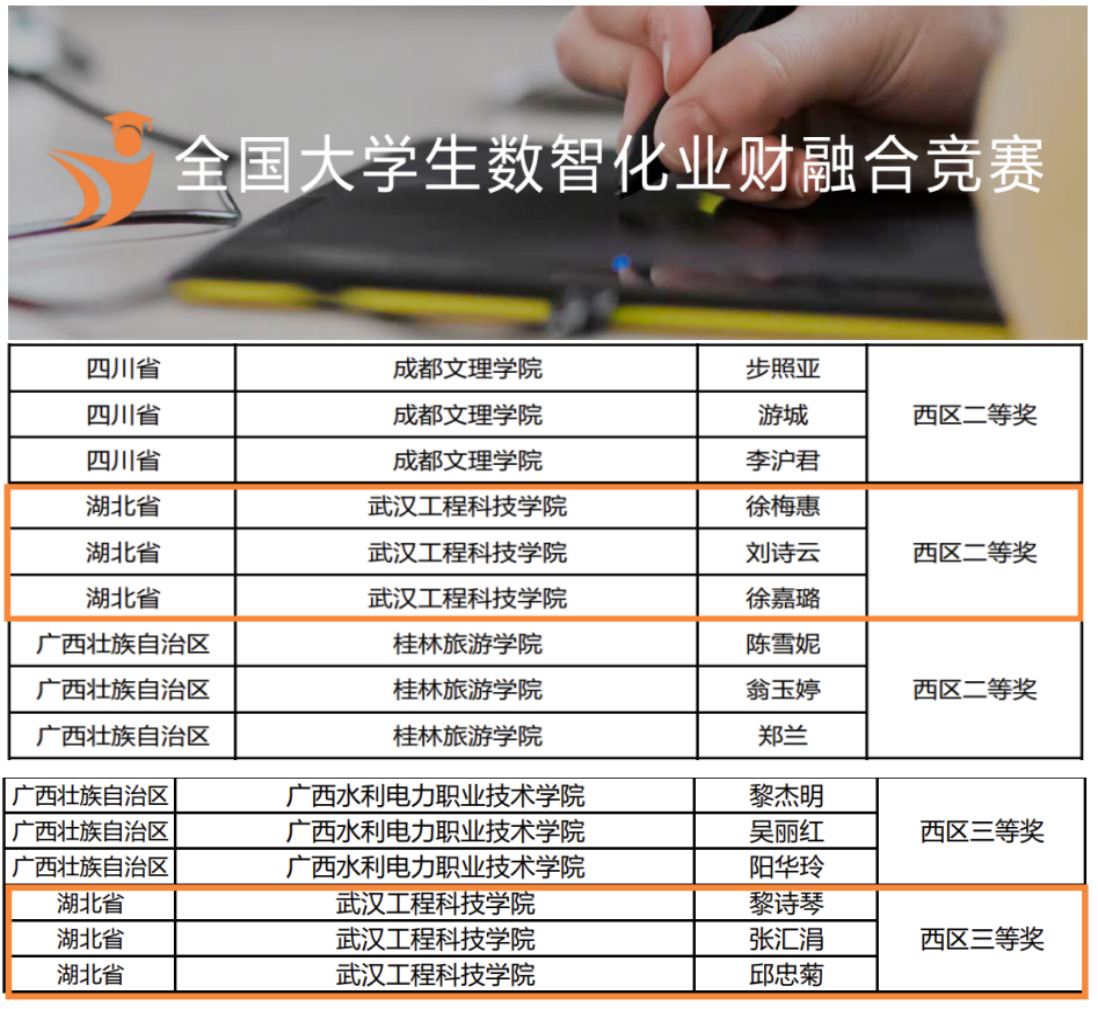 2023年10月28日,由中国商业会计学会主办的“2023年全国大学生数智化业财融合竞赛”区域赛圆满结束。武汉工程科技学院两支代表队参加了此次大赛。通过与来自四川、重庆、湖南、湖北等13个省的选手激烈较量,竞赛成绩突出,我院刘蓉、雷艳丽老师带领的本科组团队喜获区域赛二等奖;由叶嘉欣、李婷老师带领的专科组团队喜获区域赛三等奖!