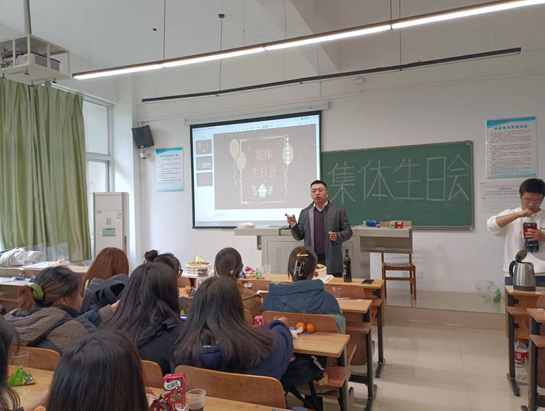 本网讯(通讯员:夏丹、刘蕾、刘雨晴)春有百花秋有月,夏有凉风冬有雪,四季更替似乎在提醒我们又长一岁,为进一步丰富21级工商管理1班同学们的课余文化生活,增进同学间的友谊,增强班级凝聚力,让同学们在学习生活之余进一步感受学校大家庭的温暖,11月14日上午,我们利用同学们的课余时间将大家聚集在一起,举办了一项特别的活动——集体生日会。生日会由经济与管理学院21级工商管理1班班主任石忠义老师主持,为21级工商管理1班下半年过生日的同学举办集体生日会,这场独特温馨的生日会,增强同学们的归属感和幸福感。