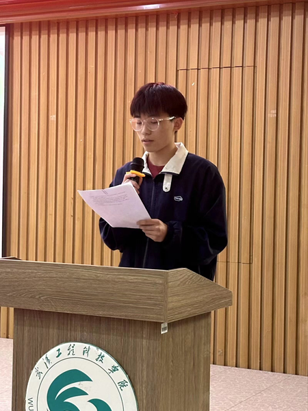 优秀志愿者代表22级金融二班陈伟涛同学发言,他表示:青春逢盛世,拼博正当时。青春,只有为人民做出了奉献的青春才会更加充实,才会存有温暖,才会留下无悔的回忆。只有同人民一道拼搏,同祖国一道前进,服务人民、奉献社会,才是当代中国青年的正确方向!