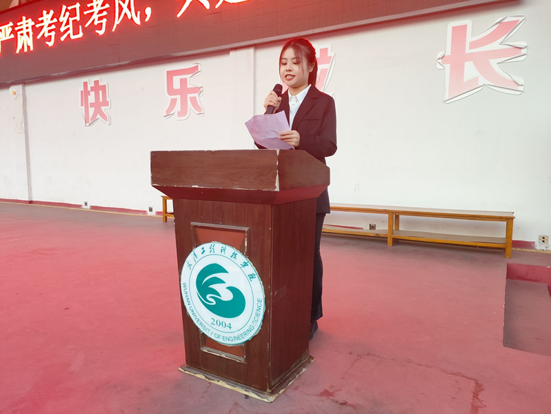 本网讯(通讯员:陶歆雅 常盈 陈梓雅 张腾远)为了维护公正、公平的考试环境,提高教育质量,培养学生的诚信意识,武汉工程科技学院经济与管理学院于2023年12月4日早上七点举行了“严肃考风考纪,共建美好校园”为主题的升旗仪式。此次升旗仪式分为四项。