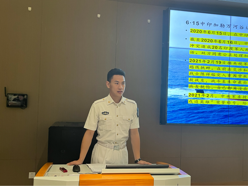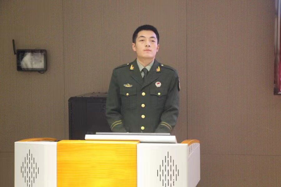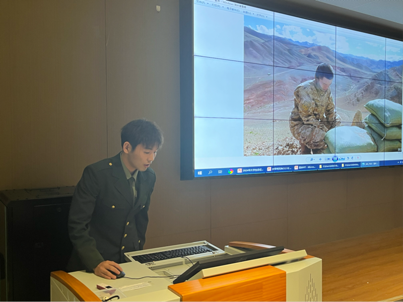 首先,由来自湖北宜昌的王俊同志,湖北十堰的胡炎同志和安徽芜湖的沙轩宇同志,为我们依次带来他们的参军经历。他们向我们分享了自己参军入伍过程中的点点滴滴,和他们自己的内心的真实想法,也展示了他们在部队中欢乐和吃苦的丰富经历。也共同强调了要有“心怀爱国情,保家卫国”的想法“国家兴亡匹夫有责”,同学们要学习军人吃苦耐劳、甘于奉献的精神,关心国防,热爱国防,时刻树立国家安全意识。