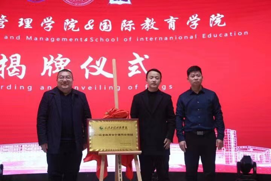 武汉工程科技学院副董事长、党委副书记、常务副校长王加青、经济与管理学院院长胡晓峰、国际教育学院副院长郑锋为国际班揭牌。