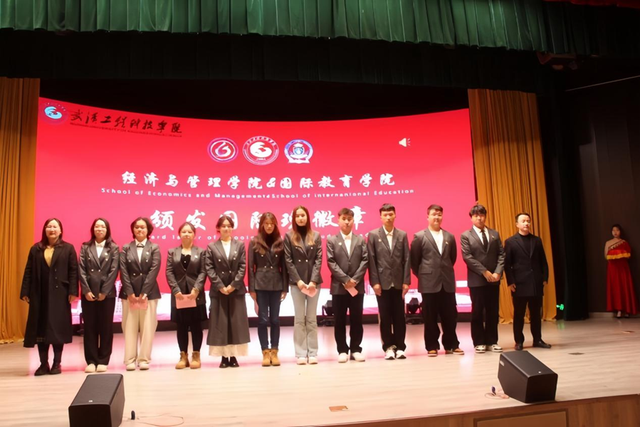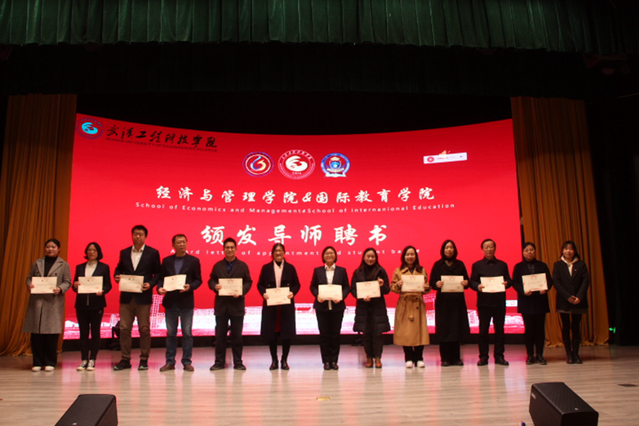 武汉工程科技学院党委常委、校长助理赵欢为国际班导师颁发聘书。