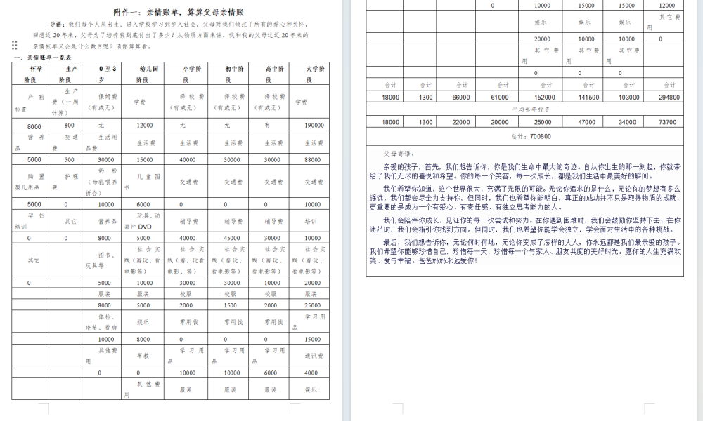 通过这次活动,在看到这一张巨额的账单里,我深深体会到了父母对我的爱,不论是开支还是生活琐事。但我总是觉得自己与父母的想法不同,不明白我内心的想法,其实,我知道父母只是不善表达,他们把对我的爱都用行动证明。