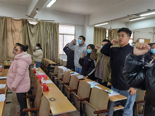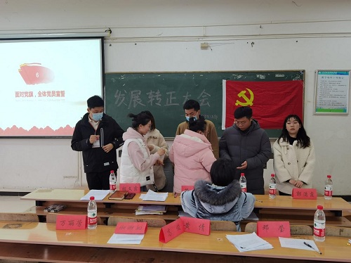 2020年12月9日下午13点整,为进一步落实党中央关于全国高校党务建设与党员发展的相关要求,加强基层组织建设,贯彻中组部发展党员工作细则、认真落实十六字建党方针,贯穿马克思主义政党建设的基本原则和内在要求,努力打造一支高效优秀的党员队伍,经济与管理学院党总支学生第三党支部党员发展转正大会在一教401教室顺利举行。经济与管理学院党总支学生第三党支部书记胡文霞老师、组织委员樊芳老师,部分学院辅导员以及学生第三党支部全体在校生党员出席了本次会议。本次会议由张菁同志主持。