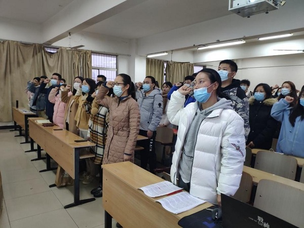 大会开始,首先全体起立,在场师生齐唱国歌,奏唱完毕后由学生二支部组织委员周芬老师带领大家重温入党誓词。入党誓词是行动指南,是共产党人的座右铭,不断重温,终身践行,前进路上,对照承诺,时时检视自我,不断校正航向,方能行稳致远。
