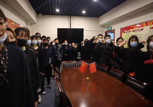 参观之后,经济与管理学院师生到达了纪念馆二楼的党员活动室,由经济与管理学院党总支书记王启帆带领到场同志进行宣誓。党员们宣誓的声音清晰且洪亮,彰显了青年一代应该有的朝气和胆识。青年一代,作为中国共产主义事业建设者和接班人应当去了解和学习先烈们往日的事迹,用先烈们的丰功伟绩作为自己未来前行的指路牌。学好专业技能的同时学好历史、铭记历史,深入了解中国共产党在为人民而奋斗的道路上做出的伟大牺牲,做一名新时代合格的青年,一名中国社会主义事业合格的接班人。