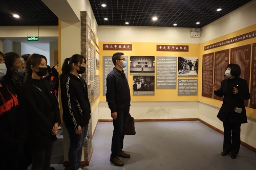 之后由陵园的工作人员带领大家游览参观了烈士陵园与纪念馆,工作人员讲到,纪念馆里面的部分陈设是根据昔日战火中的武昌城建造而来,墙面上的说明板上记载着一幕幕北伐战争中发生的点点滴滴,无言的照片和有了时光印记的遗物,能够让每一名参观者感受到,虽然他们一无所有,但是仍有一颗火热的心在跳动,支撑着他们在那片无边的黑暗中负重前行。