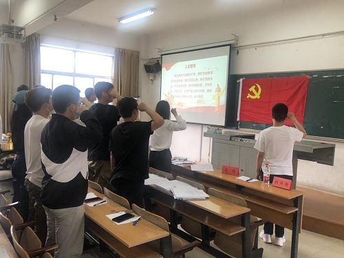 首先进行大会第一项,全体人员起立,奏唱国歌,伴随着歌声本次大会正式开始,由2021年上半年发展对象进行总结汇报,随后由发展对象的第一培养联系人、第二培养联系人以及群众代表相继对其在培养考察期间的状况作出评价总结,在全体正式党员投票表决后,由发展对象本人作总结表态,阐述自己对未来学习生活的规划。在坚持入党自愿原则和择优吸收原则情况下,段梦思等25名发展对象全票通过,成为中共预备党员。