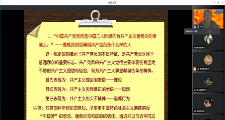 2022年4月20日,经济与管理学院第三十四期党校第三次课程在线上腾讯会议顺利进行,由武汉工程科技学院经济与管理学院教师叶舜老师为同学授课。