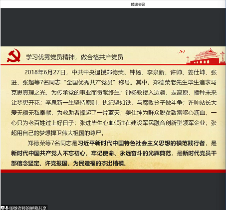我们怀着崇敬之情学习党员精神,老师讲到学习他们坚定执着的信仰信念。身为一名共产党员,要坚定马克思主义信仰、社会主义和共产注意信念,对党忠诚,对事业忠诚,用信仰照亮前行的道路,用信仰书写自己的篇章,像郑德荣等七位同志,坚守信仰,不懈努力,绽放信念的力量。还要学习他们勇于担当无私奉献,郑德荣等七位同志面对工作困难,没有退缩,承担着自己的责任,奉献自己的一切,哪怕是自己的生命,他们都时刻谨记党的宗旨,牢记自己是人民的公仆,全心全意为人民办实事。