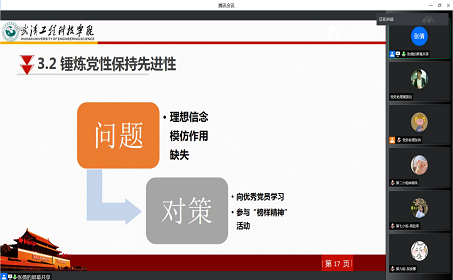 2022年4月28日,经济与管理学院第三十四期党校第六次课程在线上腾讯会议顺利进行,由武汉工程科技学院经济与管理学院教师张倩老师为同学们授课。