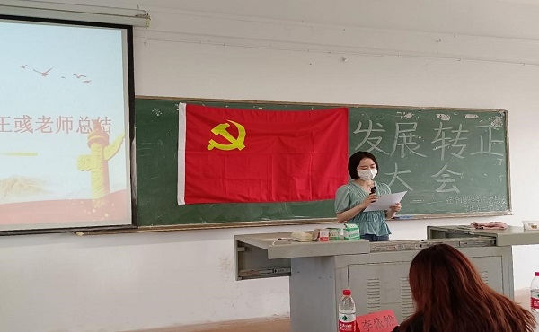大会第四项,由学生第二党支部书记王彧老师做总结发言,首先她向大家表示热烈祝贺,希望大家一定要勇敢地肩负起时代赋予的神圣使命,解放思想、开阔视野、勇于创新,提高综合素质,展现聪明才智,实现自身价值和社会价值,坚定信念,坚持进步要求,积极创造条件,通过实际行动向组织靠拢,尽一名党员应尽的责任。