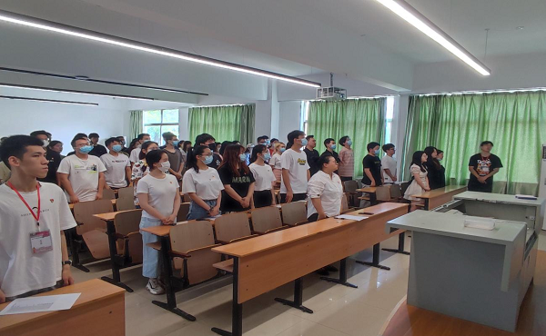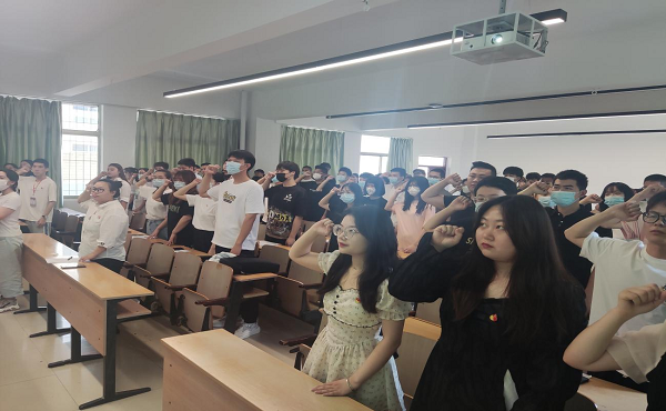 活动伊始,全体起立,奏唱国歌,临别党课在嘹亮的国歌声中开始。接着由学生第二党支部书记王彧老师领誓,带领全体毕业生党员重温入党誓词,表达了对党的忠诚、为共产主义事业奋斗终身的决心,希望他们在今后的工作生活中牢记自己的誓言,自觉担负起光荣的责任和使命,在广大群众中充分体现党员的先进性,真正起到模范带头的作用。