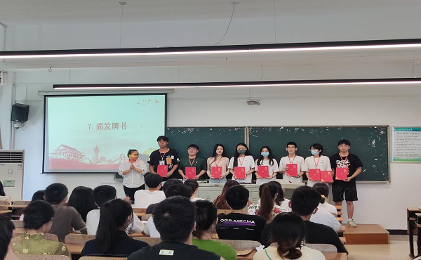 接着,由学生第三党支部书记胡文霞老师为19级党务助理颁发聘书,胡老师充分肯定了党务助理在推动学生支部在党建方面做出的贡献,相信各位党务助理接下来会更加出色的完成工作任务。