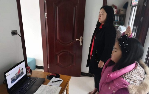 各任课老师和辅导员在开课前就做足了准备。视频里的五星红旗随着国歌冉冉升起,全国各地的学子们守在各自的屏幕前,奏国歌、升国旗,通过互联网共享这神圣一刻,共同为祖国加油,向逆行者致敬。