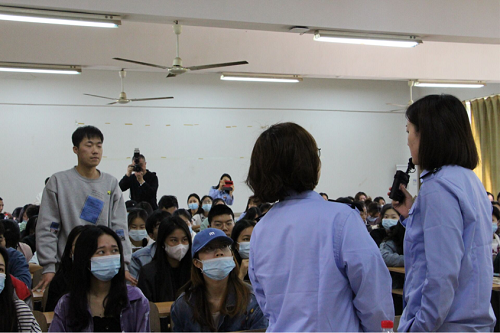 紧接着,周一乔老师紧紧围绕个人所得税的特点以及分类进行讲解,重点对个人所得税中的工资薪金、劳务报酬等征税项目、适用税率以及免征项目进行解读,并通过大量的举例进行了详细说明。结束后的提问环节同学们积极参与,争先抢答,现场气氛火热。宣讲结束后,老师们邀请了十名学生跟车去执法中心进行实践宣传。