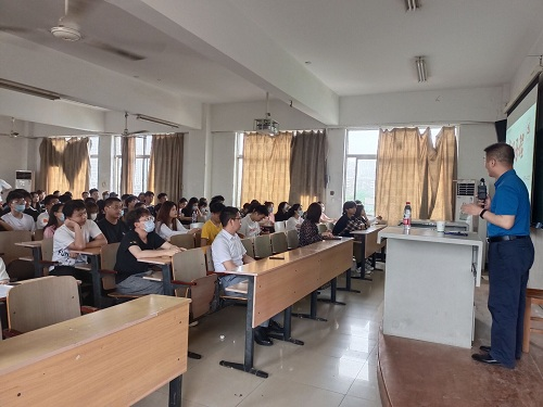 2021年5月12日,武汉工程科技学院经济与管理学院于一教501召开了党史教育讲座。本次讲座的主讲人是我校后勤保卫处常务副处长王曙光,讲座的主题是“学党史 听党话 跟党走”。经济与管理学院副院长兼党总支书记王启帆,全体辅导员以及各学生支部预备党员参加了本次专题讲座。
