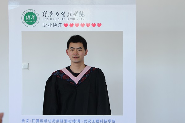随后,毕业生代表崔学通同学上台发言,他回忆了在校的点点滴滴,感谢老师们多年来的关怀和悉心的教导,以及同学的鼓励和帮助。他表示,毕业典礼是人生中的一个重要的仪式,代表对学生时代告别,未来将担任不同的角色,肩负不同的责任。他承诺在今后的工作和生活中,一定牢记恩师们的教诲,用努力和成功来回报社会与学校。在最后他祝愿经济与管理学院学院桃李满天下,明天更美好。