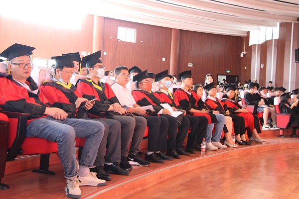 本次毕业典礼在图书馆五区报告厅进行,经济与管理学院院长胡晓峰,党总支书记王启帆,副院长涂淼、毛洪涛,团总支书记兼学工科科长张伟静,以及全体经管教师们出席典礼。师生齐聚一堂,以典礼见证成长和收获,共同回忆一起走过的美好时光,开启人生新的旅程与辉煌。