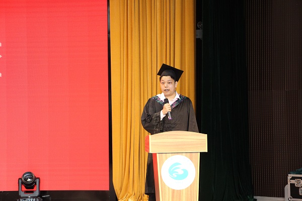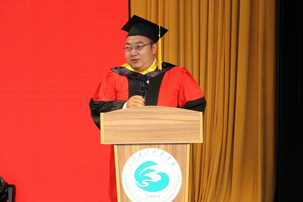 紧接着,胡晓峰院长致毕业贺词,对即将踏上新的人生征程的毕业生们赠予美好的祝福,望大家在将来的人生道路中能继续扬帆起航。在新的环境中能够不断进步,取得更大的成就。同时,也提醒大家,即使离开了学校也不要忘记学习,坚持自己的梦想,踏踏实实做人、安安稳稳做事。