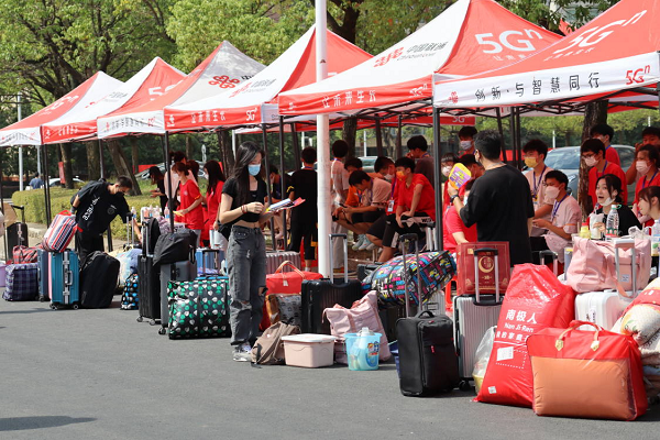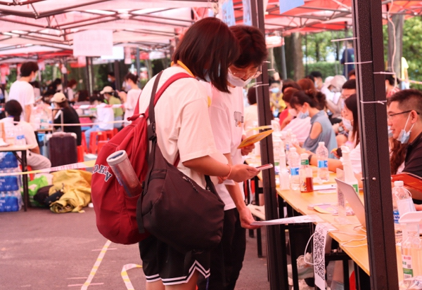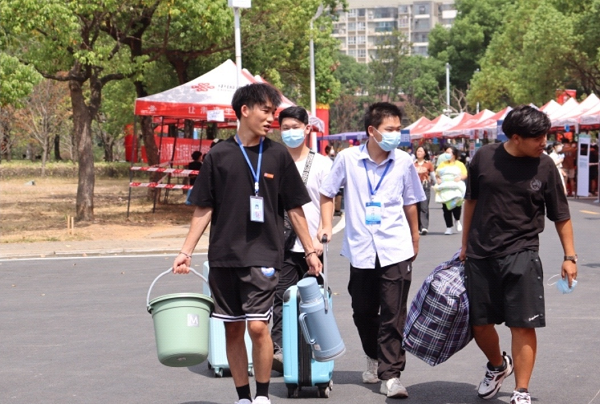 一滴滴汗水流淌过志愿者的额头,中午的闷热显得格外难忍,每个人的脸上都被阳光留下深色的印记,但他们仍然耐心解答每一个新生的疑惑,分担学弟学妹沉重的行李,一趟又一趟往返在校园的道路上。
