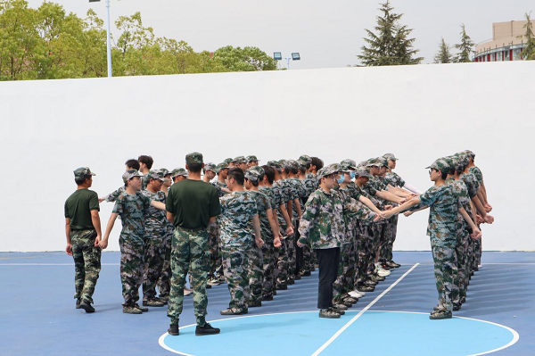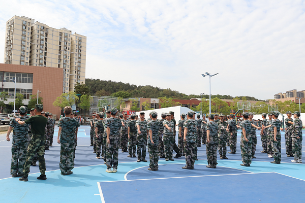 经济与管理学院的新生们被分在不同的区域,有条不紊地开展训练。站军姿,走正步,尽管重复这些基本动作会很枯燥,他们也还是认真对待。头顶烈日骄阳,运动场上撒满了汗水,校园四周洋溢着青春的活力。