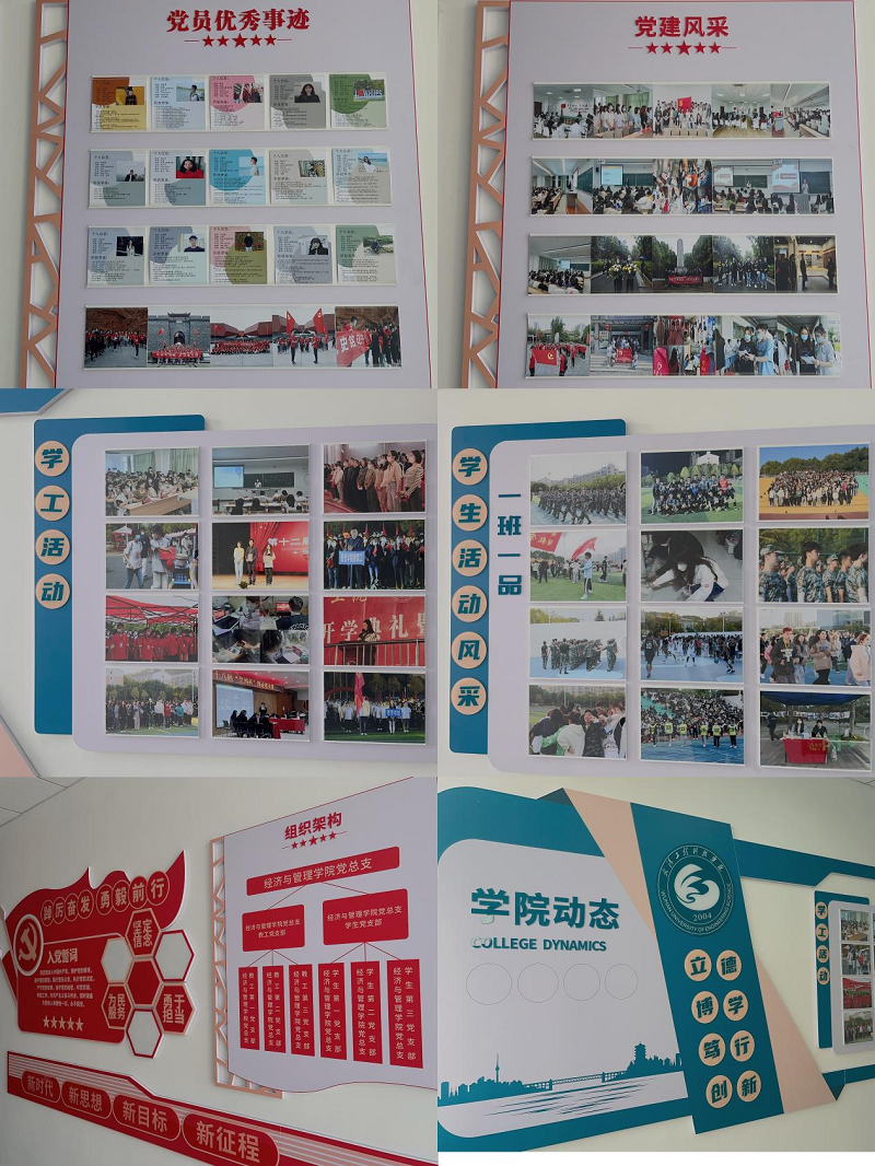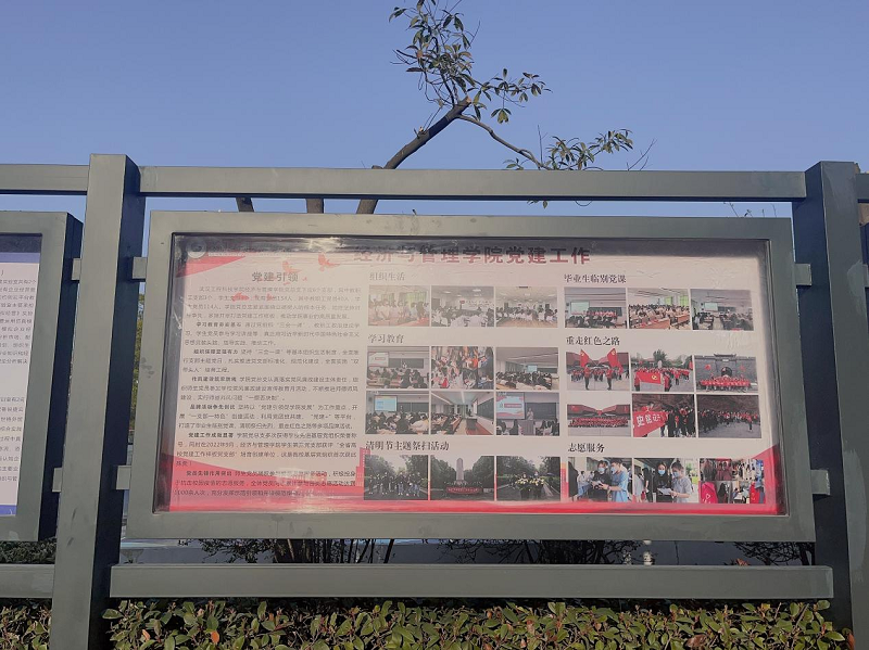 学院组织的各项学工活动,让同学之间有了更多的交流机会,在竞争中发现不足,提升自我,在合作中学会如何团结协作,与人交往;在党建活动方面,定期的党团学习会议及课程,加强了学生的思想道德教育,引导青年正向发展。特别在疫情期间,志愿活动不间歇,优秀的志愿者也纷纷涌现。这些精彩的瞬间都被记录在宣传栏之中,放眼望去,在阳光下闪耀的是每个经管学子挥洒青春、无私奉献的模样。